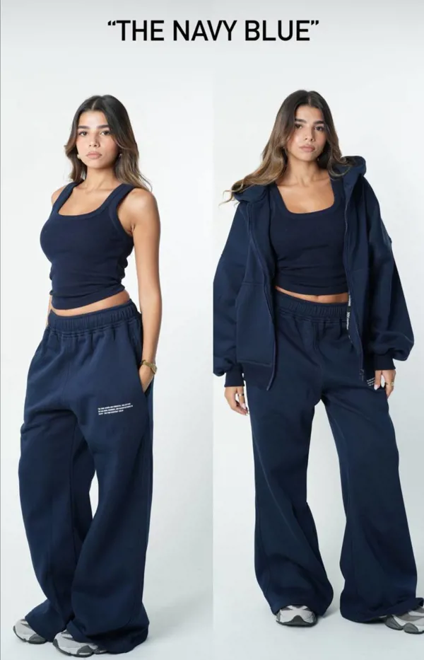 بينما البنطلون يأتي بتصميم واسع قليلاً ليوفر حركة وراحة. السوت مثالية للارتداء اليومي،